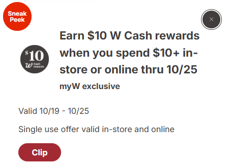 $10 walgreens cash coupon 10/19-10/25