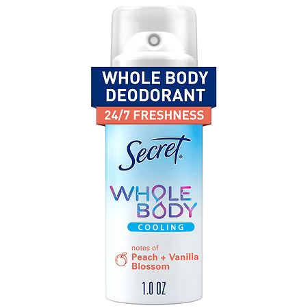 Secret Whole Body Aluminum Free Cooling Deodorant Spray for Women Peach & Vanilla 1 oz reg psa $3.99!